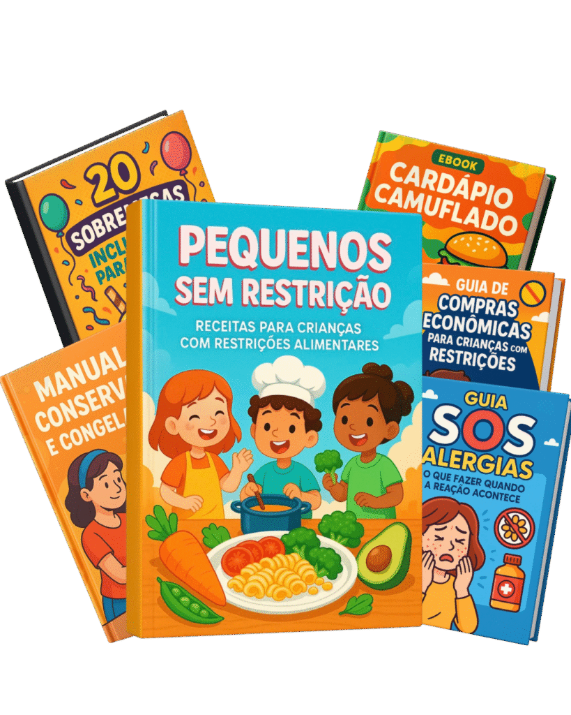 Cuide da alimentação do seu filho com 200 receitas seguras sem glúten e sem lactose — práticas, acessíveis e feitas para crianças com restrições.